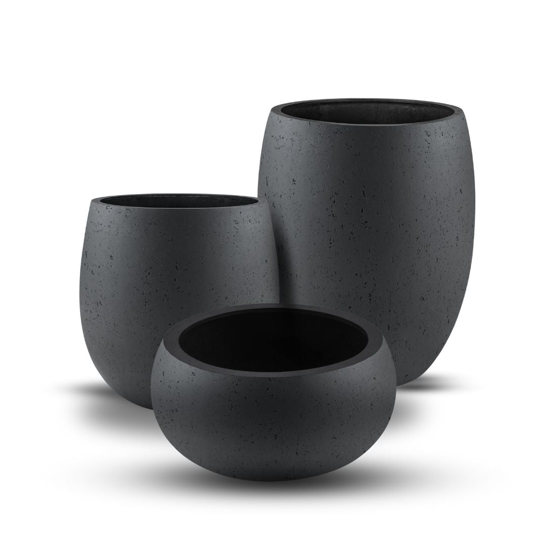 Alle drei Modelle bestehen aus robustem, hochwertigem Fiberglas, das sie leicht, wetterfest und UV-beständig macht. Der Farbton Anthrazit wirkt edel, klar und modern – und fügt sich mühelos in zeitgenössische, minimalistische oder kontrastreiche Gestaltungen ein.