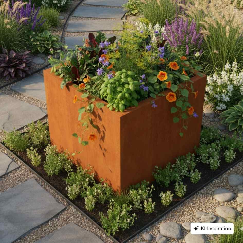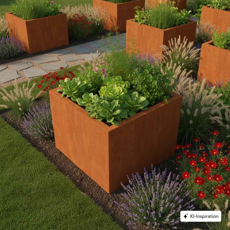 Das Hochbeet TULARE aus hochwertigem Cortenstahl verwandelt deinen Garten, deine Terrasse oder deinen Hof in einen stilvollen und funktionalen Lieblingsplatz – perfekt, um Kräuter, Gemüse oder Zierpflanzen auf moderne Weise anzubauen.