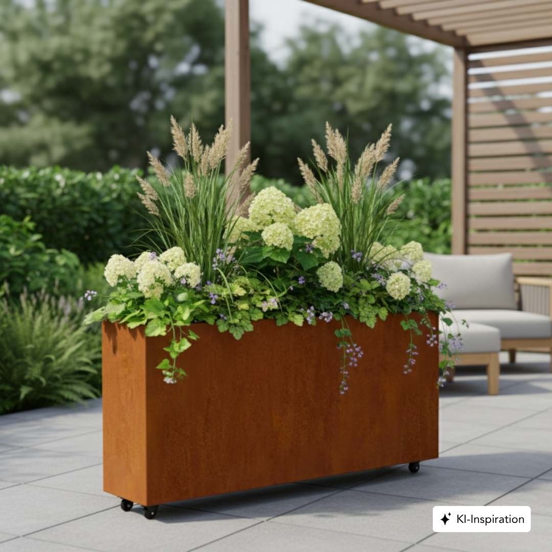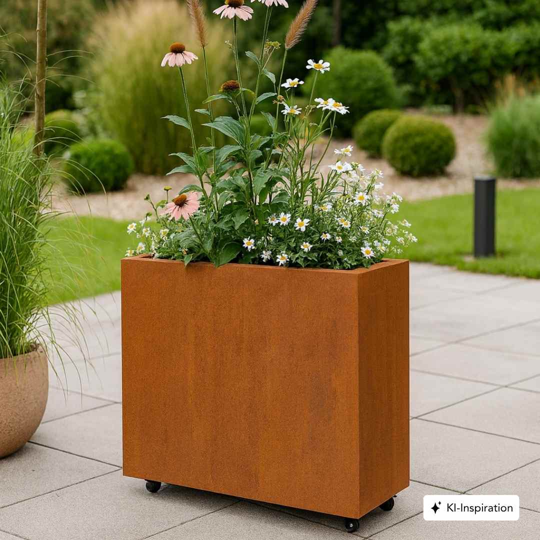 Pflanzkübel Covelo Raumteiler Cortenstahl mit Rollen