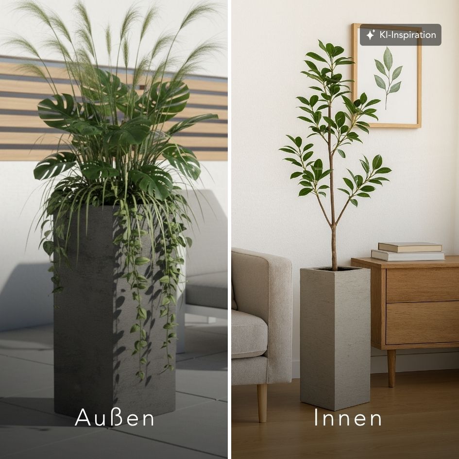 Unsere Fiberglas-Pflanzkübel in authentischer Lehmoptik vereinen zwei entscheidende Vorteile: Sie bieten die visuelle Schwere und Eleganz traditioneller Tongefäße, sind aber zugleich erstaunlich leicht, was das Versetzen und die allgemeine Handhabung enorm erleichtert.