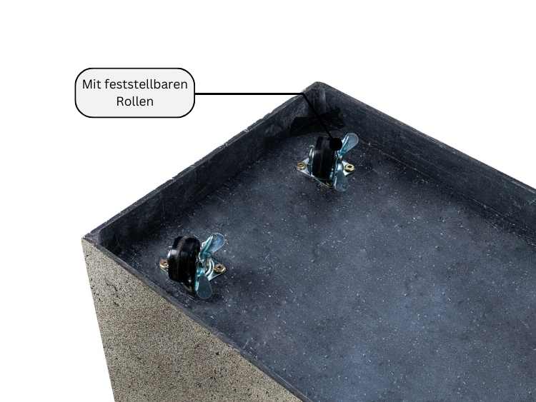 Den "Pflanzkübel Avon Betonoptik" gibt es außerdem auch mit Rollen. Das ermöglicht dir maximale Flexibilität in der Handhabung deines Pflanzkübels, selbst dann, wenn er bereits gefüllt und bepflanzt ist.