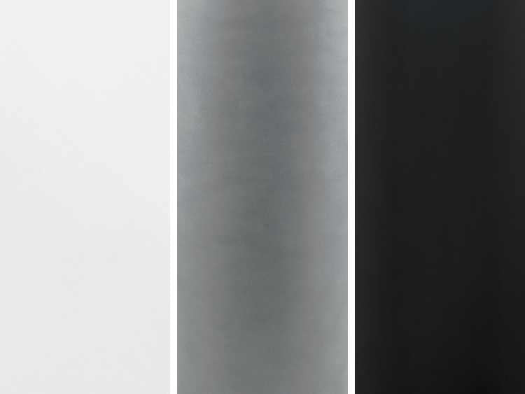 Du kannst wählen zwischen seidenmattem weiß (links), betongrau (mitte) oder seidenmattem schwarz (rechts).