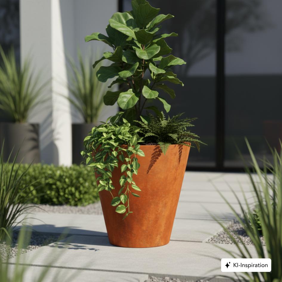 Der Pflanzbehälter CIMA aus Cortenstahl ist mit seiner attraktiven konischen Form ein Hingucker in deinem Garten oder an öffentlichen Gebäuden.