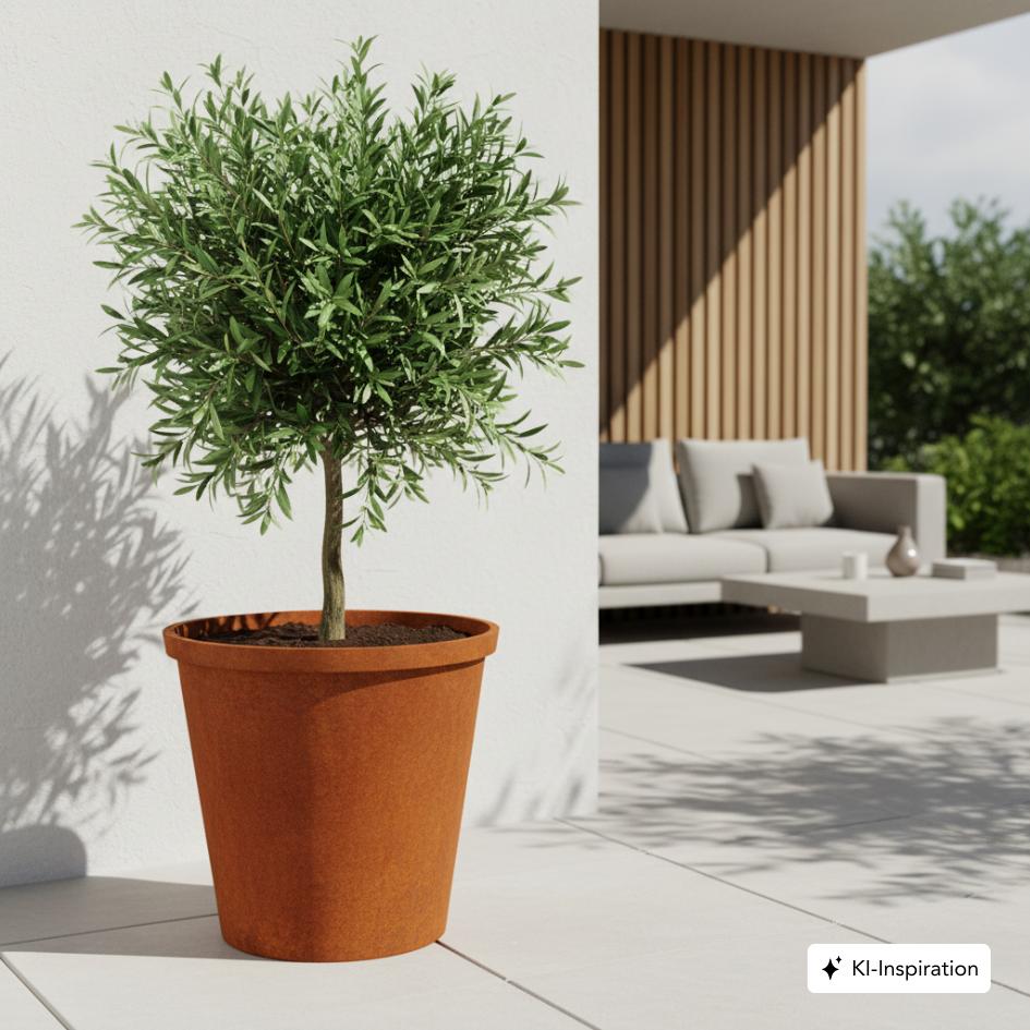 Der Cortenstahl Pflanzkübel eignet sich perfekt, um in deinem Garten starke Akzente zu setzen. Die Form und die Verdickung am oberen Rand sorgen für eine herausragende Präsenz, die durch die Verfügbarkeit von Modellen mit bis zu 1 Meter Höhe nur verstärkt wird.