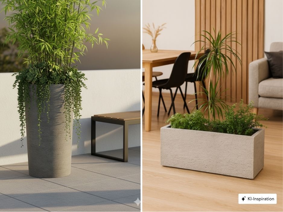 Unsere Fiberglas-Pflanzkübel in authentischer Lehmoptik vereinen zwei entscheidende Vorteile: Sie bieten die visuelle Schwere und Eleganz traditioneller Tongefäße, sind aber zugleich erstaunlich leicht, was das Versetzen und die allgemeine Handhabung enorm erleichtert.