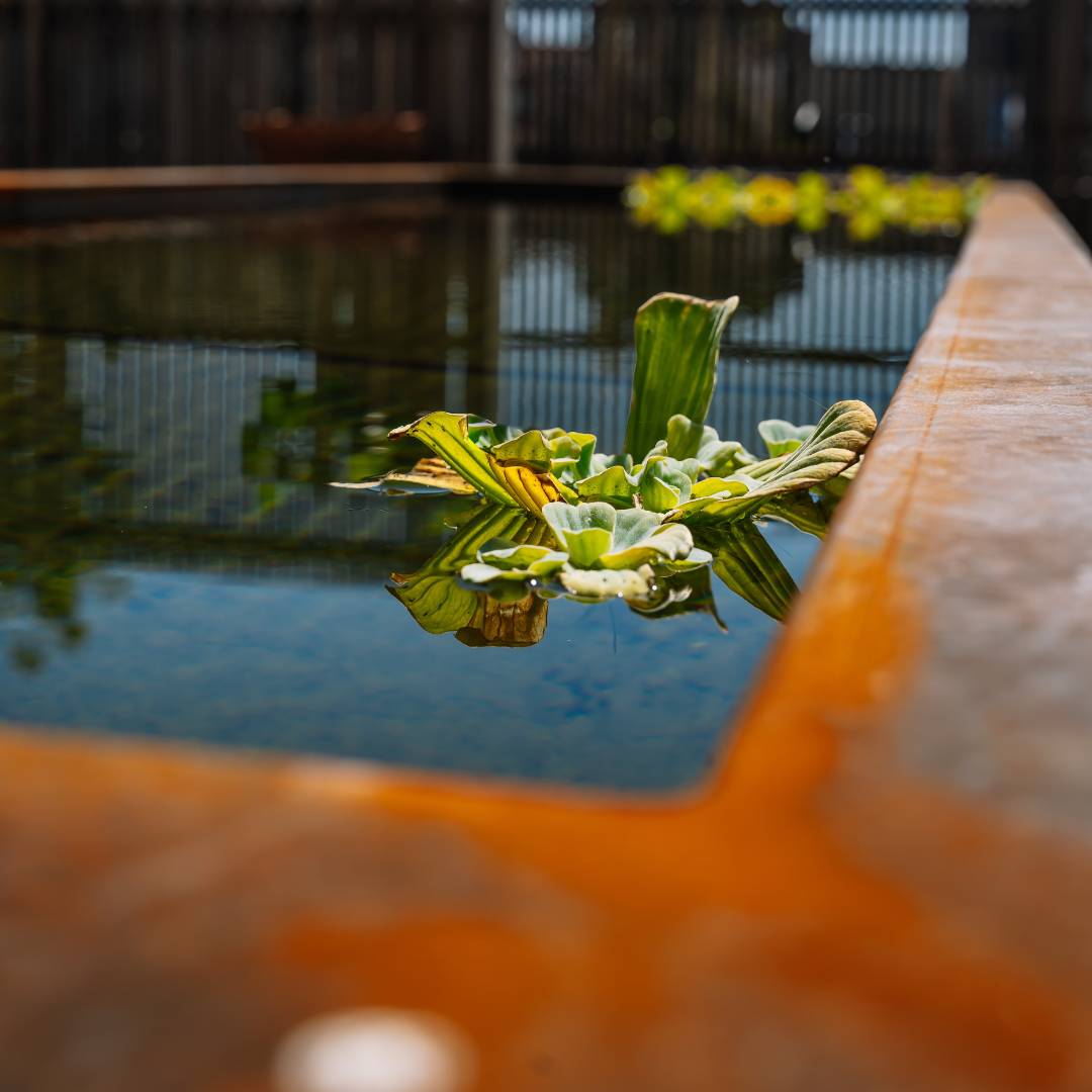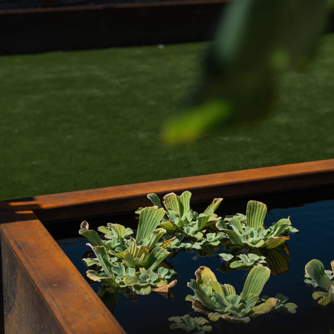 Achte darauf, dass Corten-Produkte immer in einer Umgebung eingebaut werden, die schnell abtrocknen kann. Dauerfeuchtigkeit ist schädlich für die Entstehung der Patina, kann zu Fleckenbildung führen und die Bildung der natürlichen Schutzschicht verhindern.