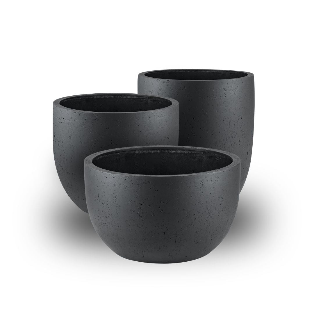 Der ESTO bietet als Mittelgröße des Sets viel Platz für dekorative Solitärpflanzen, kompakte Sträucher oder größere Zimmerpflanzen. Die runde Form schafft eine ruhige, moderne Optik, die im dunklen Ton besonders hochwertig wirkt.