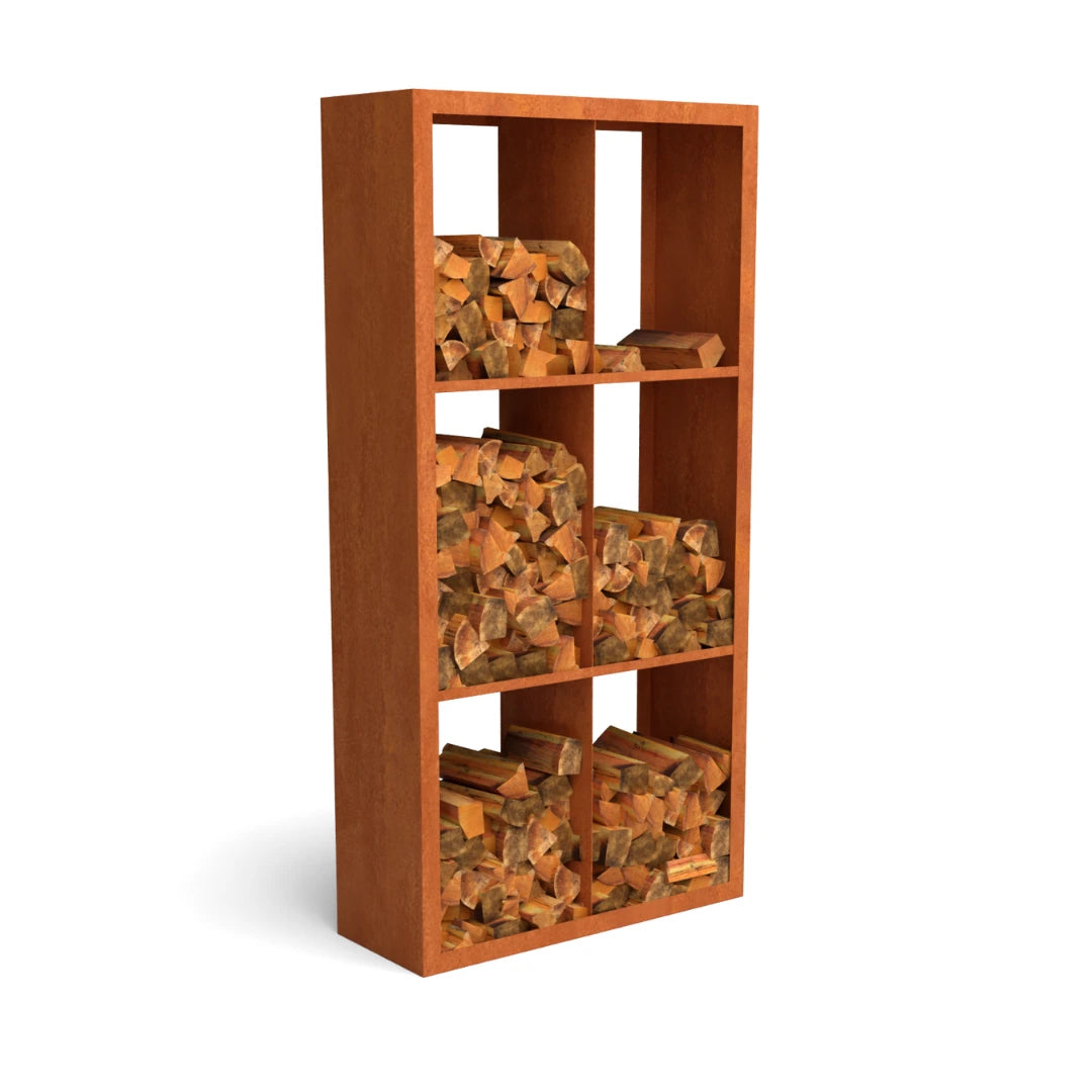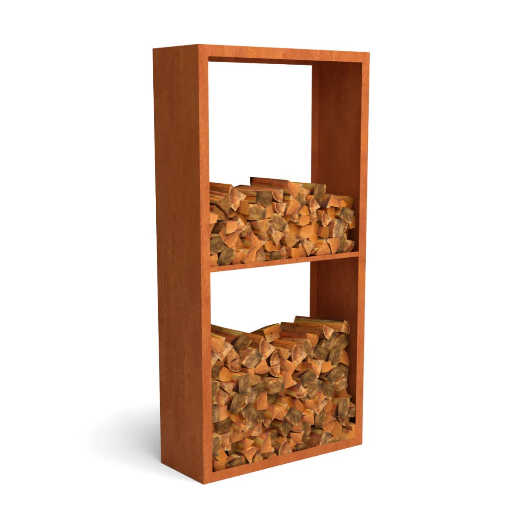 Das praktische Holzlager BANDON aus Cortenstahl ist ein schönes Außenmöbel und wertvoller Lagerplatz für dein Brennholz.