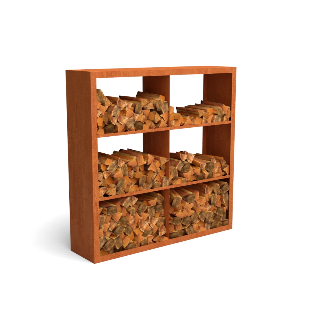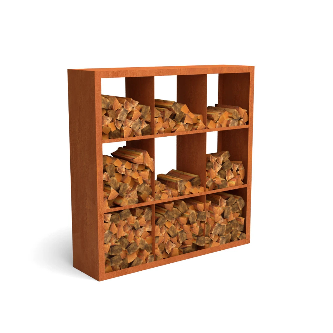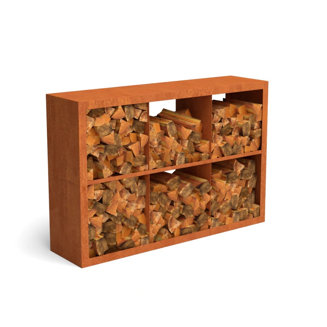 Holzlager aus Cortenstahl sind besonders langlebig und von Natur aus gegen Durchrostung geschützt.