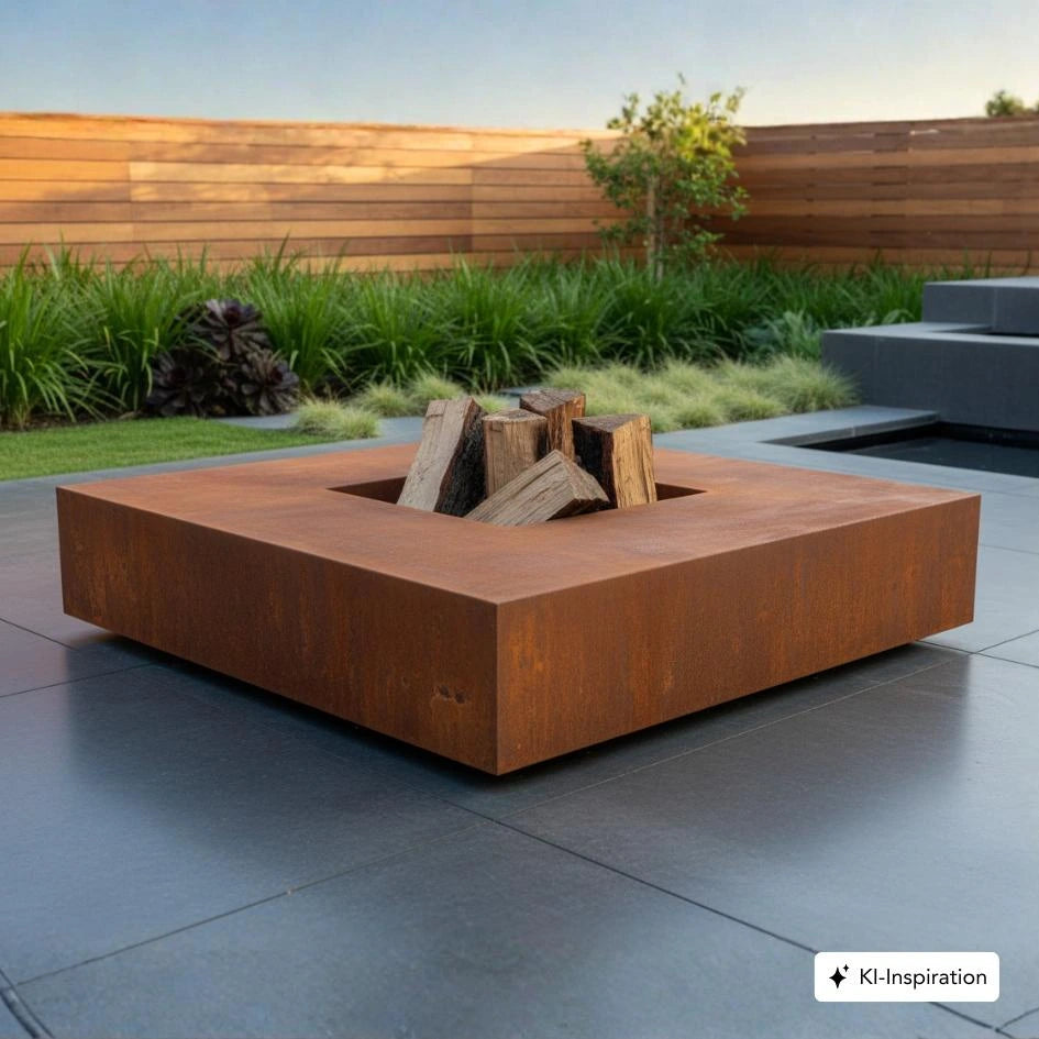 Feuerstelle Cambria Cortenstahl, quadratisch