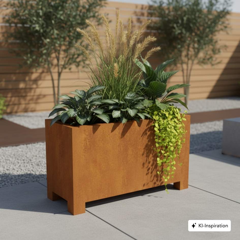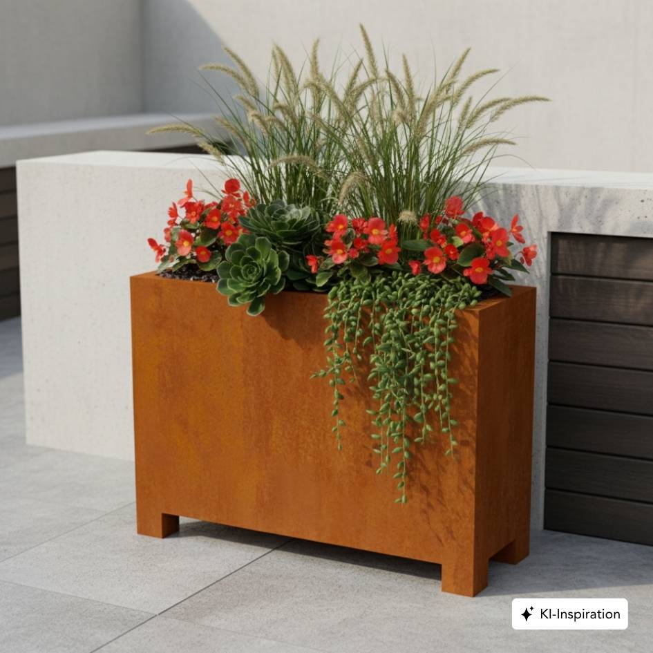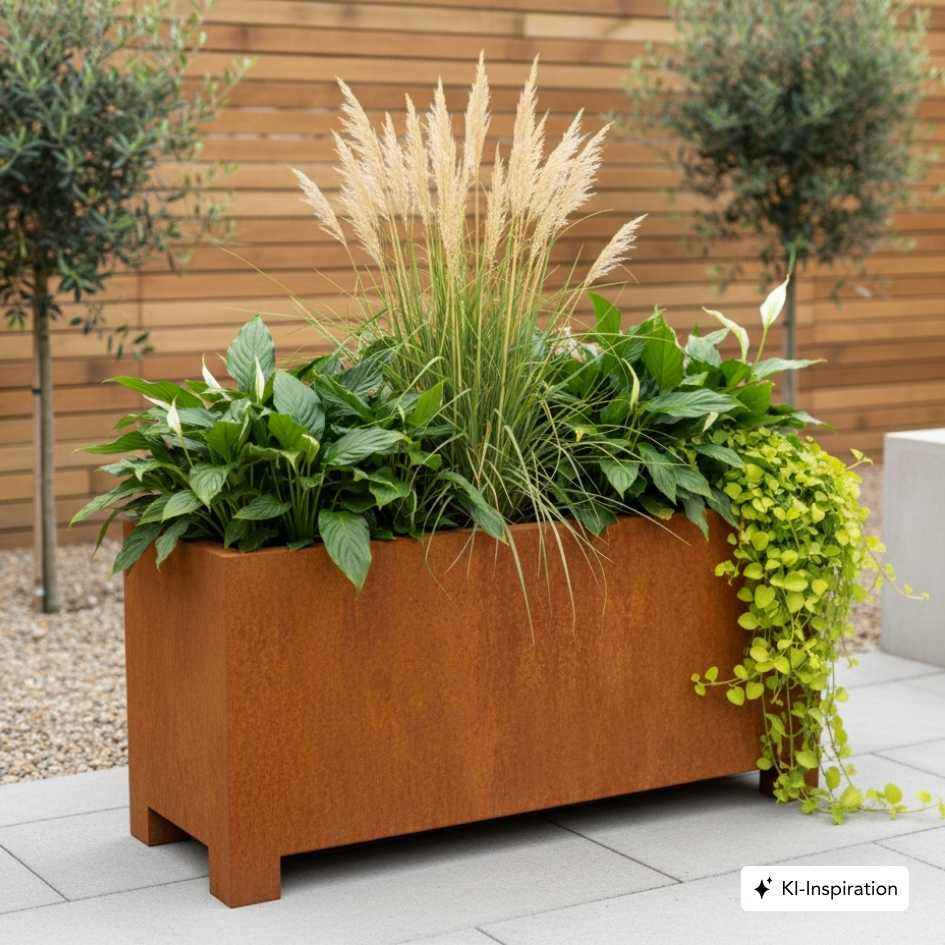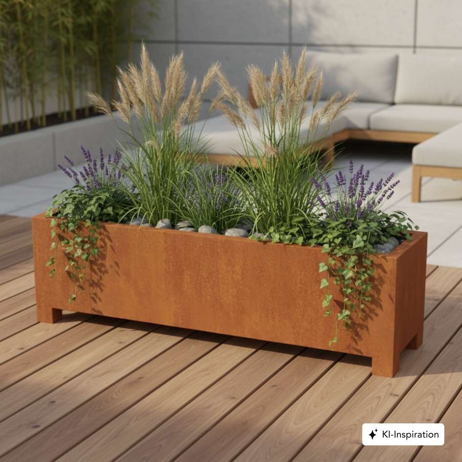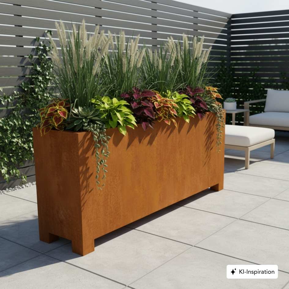 Mach mit dem rechteckigen Pflanzkübel CALICO aus Cortenstahl deinen Garten oder deine Terrasse zu einer einladenden Wohlfühloase.